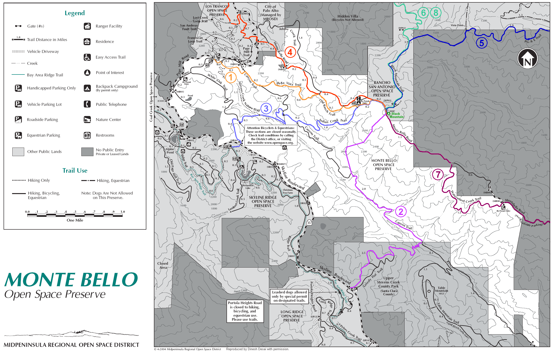 The Black Mountain Brouhaha map shows the full length of three of the routes (days 1, 2, and 3) and the upper portions of the other five. The summit of Black Mountain appears just above the center. This Web-page version is just large enough to show the basic layout.